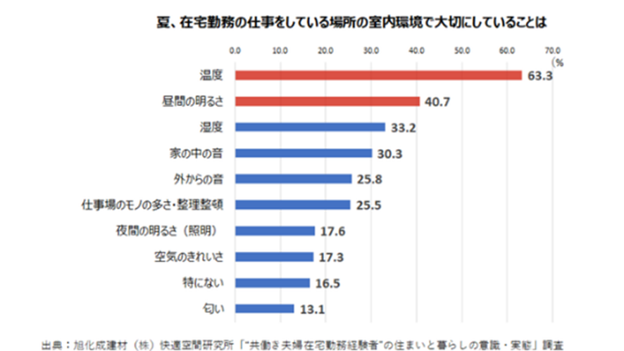 PR TIMES:【在宅勤務している場所の室内環境で大切にしているのは「温度」「昼間の明るさ」】「“共働き夫婦 在宅勤務経験者”の住まいと暮らしの意識・実態」調査結果を発表
