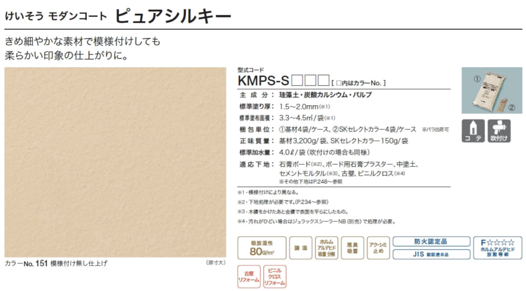「けいそう土」を主材にした塗り材で、けいそう土の特長を生かした高い調湿性能などが期待できる高機能内装材です。