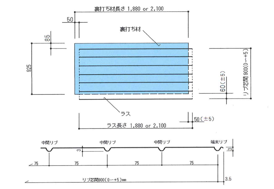 リブ(力骨)の山高を3mmに抑え、モルタルへのストレスを軽減させることで、クラックの発生率を抑えました。