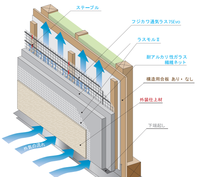 「フジカワ通気ラス75Evo」は、調合軽量モルタルの供給、独自のモルタル外壁工法の提案を行う「富士川建材工業」のオリジナル製品です。