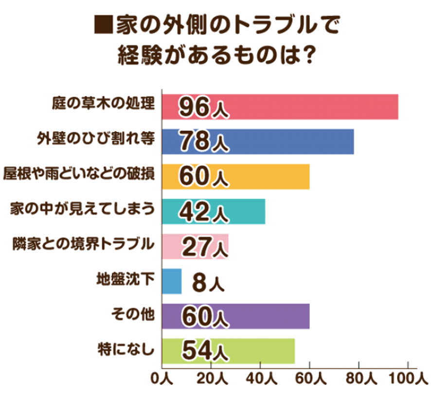 株式会社MayLightが一戸建てに住む300名を対象に実施したアンケートによると、外壁のひび割れ等のトラブルを経験したことがある人は78名。
