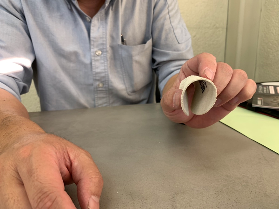 ※画像はスタッコフレックスを塗布したコースターを折り曲げたものです